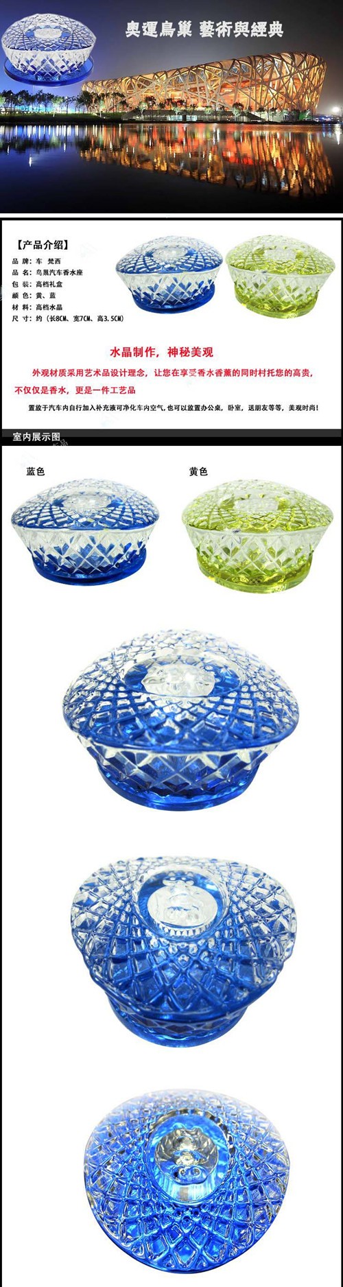 » 汽车香水座K9水晶经典北京2008奥运鸟巢高档车用内饰品摆饰