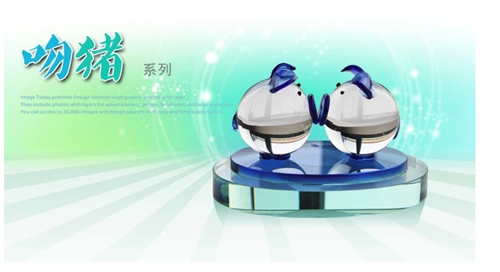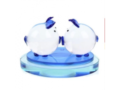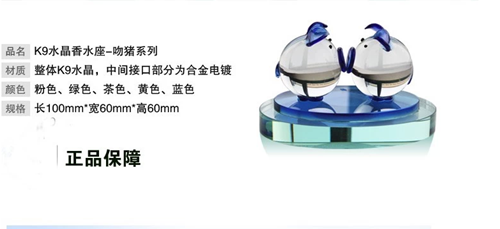 » 汽车高档水晶香水座 车载可爱吻猪创意摆件车用蓝色粉色摆件